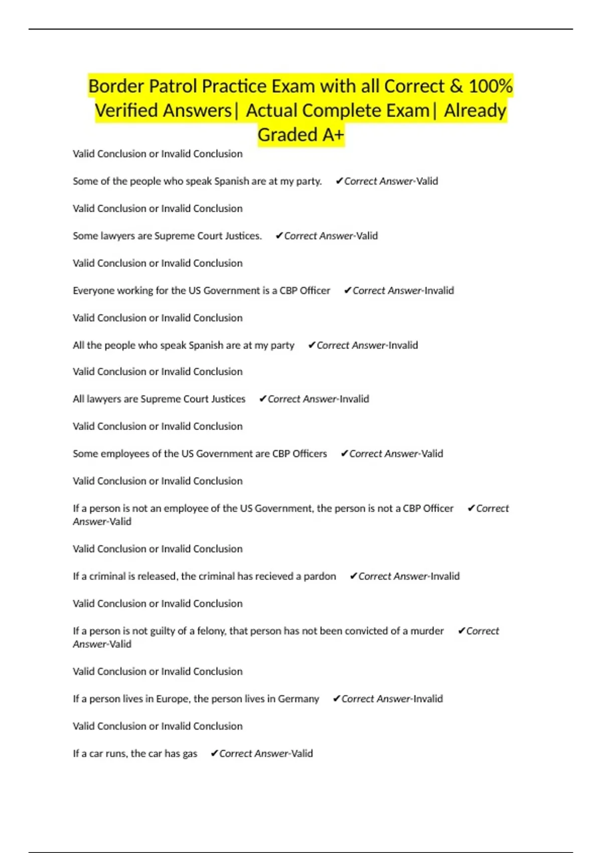 Border Patrol Practice Exam with all Correct & 100% Verified Answers| Actual Complete Exam| Already Graded A+