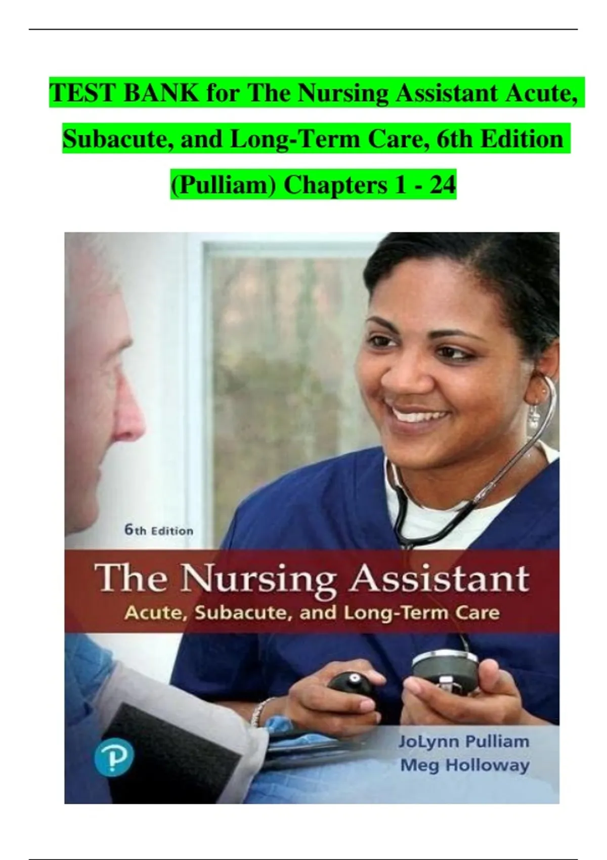 TEST BANK for The Nursing Assistant Acute, Subacute, and Long-Term Care, 6th Edition (Pulliam), Verified Chapters 1 - 24, Complete