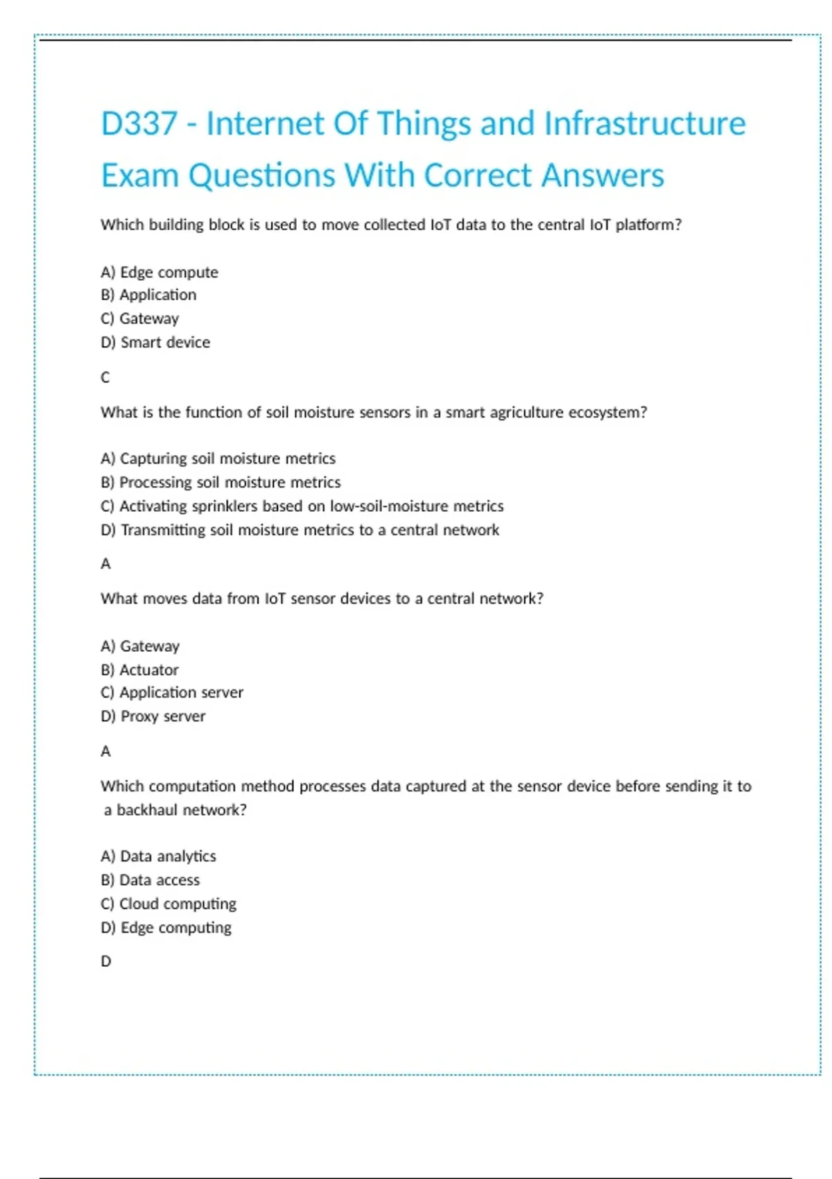 D337 - Internet Of Things and Infrastructure Exam Questions With Correct Answers