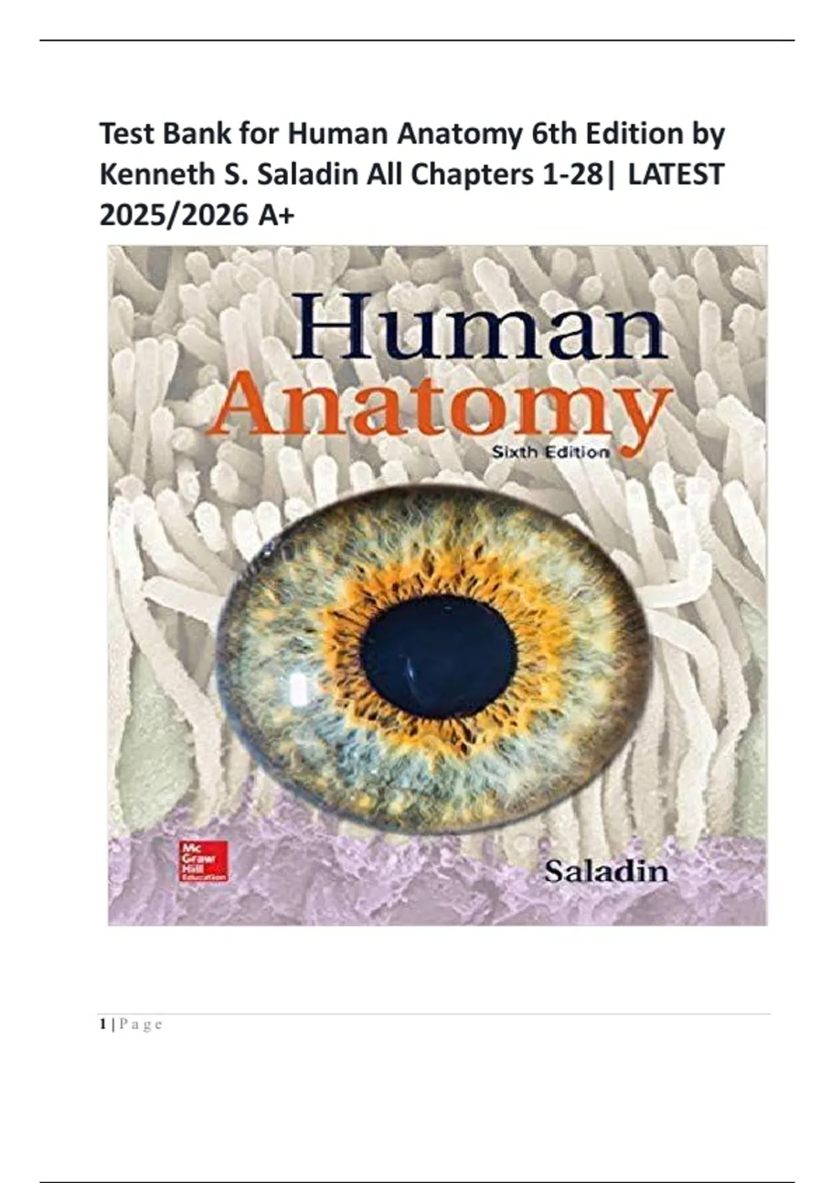 Test Bank for Human Anatomy 6th Edition by Kenneth S. Saladin| 9781260399721| All Chapters 1-28| LATEST