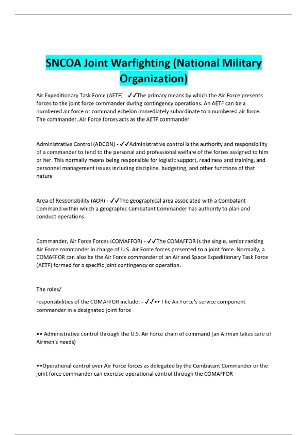SNCOA Joint Warfighting (National Military Organization)