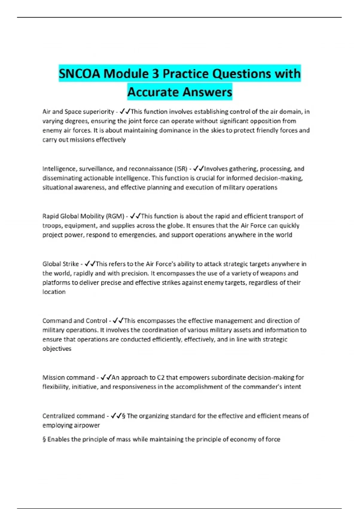 SNCOA Module 3 Practice Questions with Accurate Answers