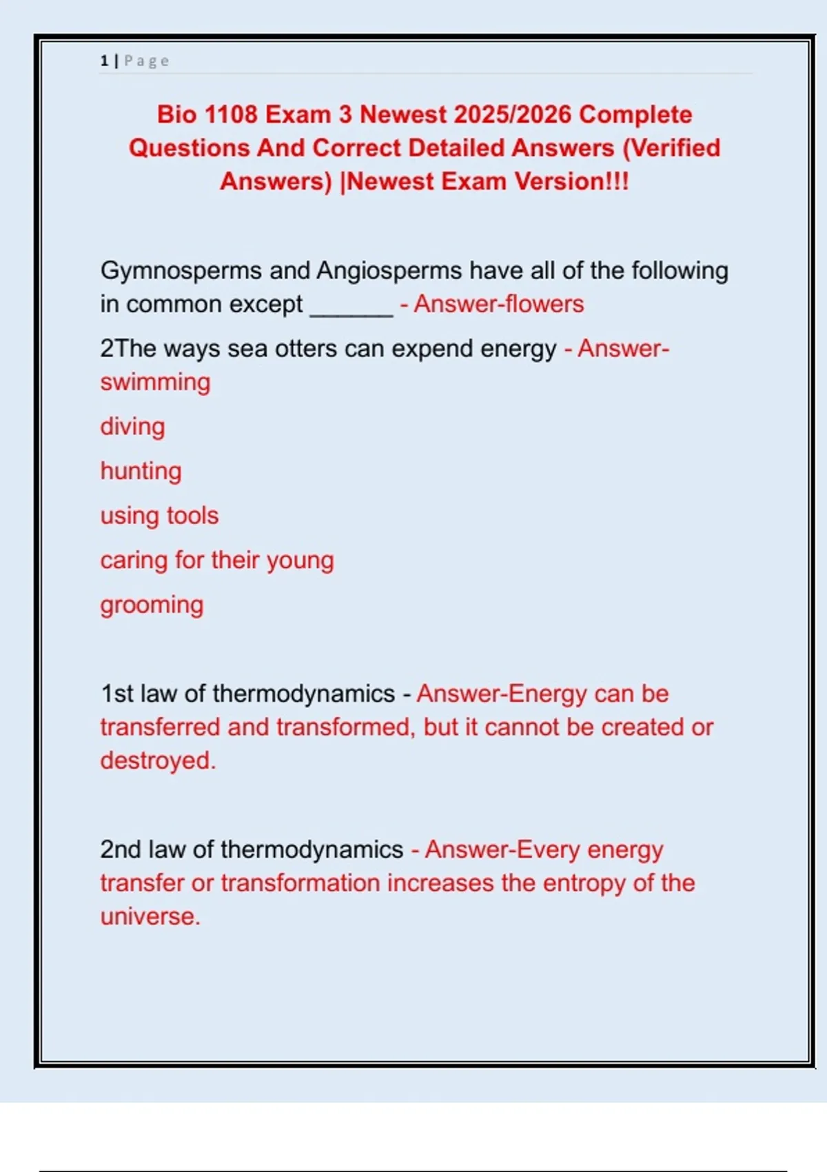 Bio 1108 Exam 3 Newest 2025/2026 Complete Questions And Correct Detailed Answers (Verified Answers) |Newest Exam Version!!!