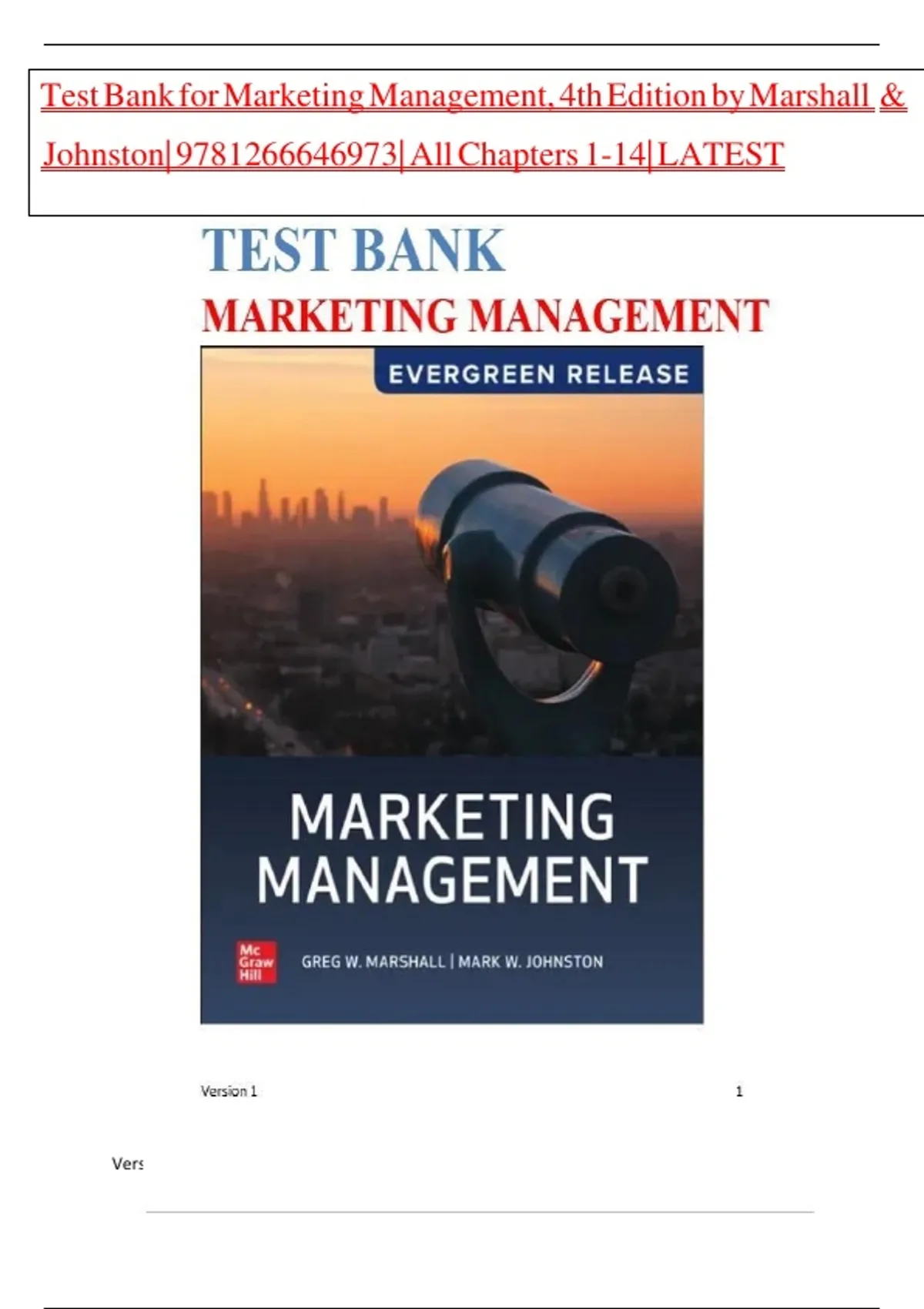Test Bank for Marketing Management, 4th Edition by Marshall &