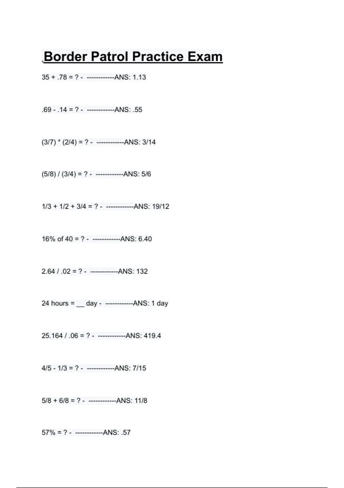 . Border Patrol Practice Exam
