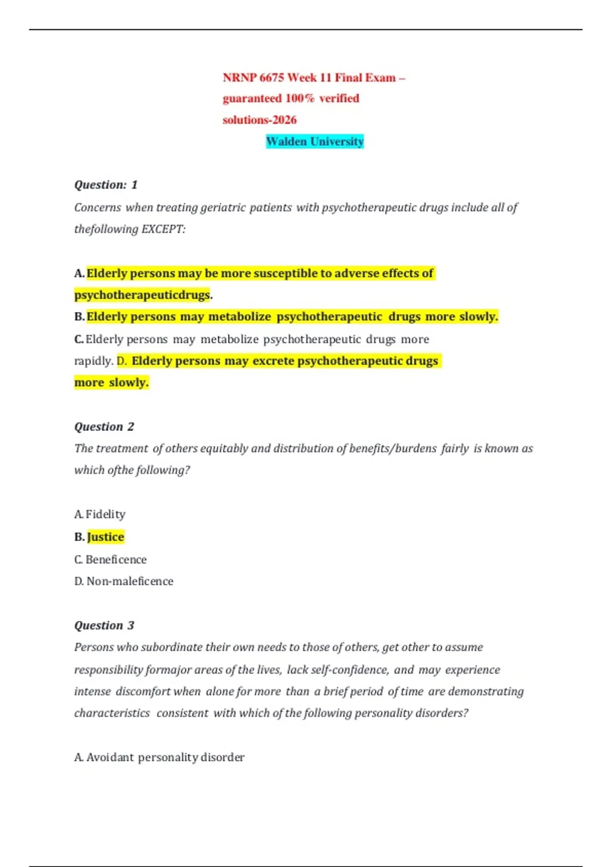 NRNP 6675 Week 11 Final Exam –