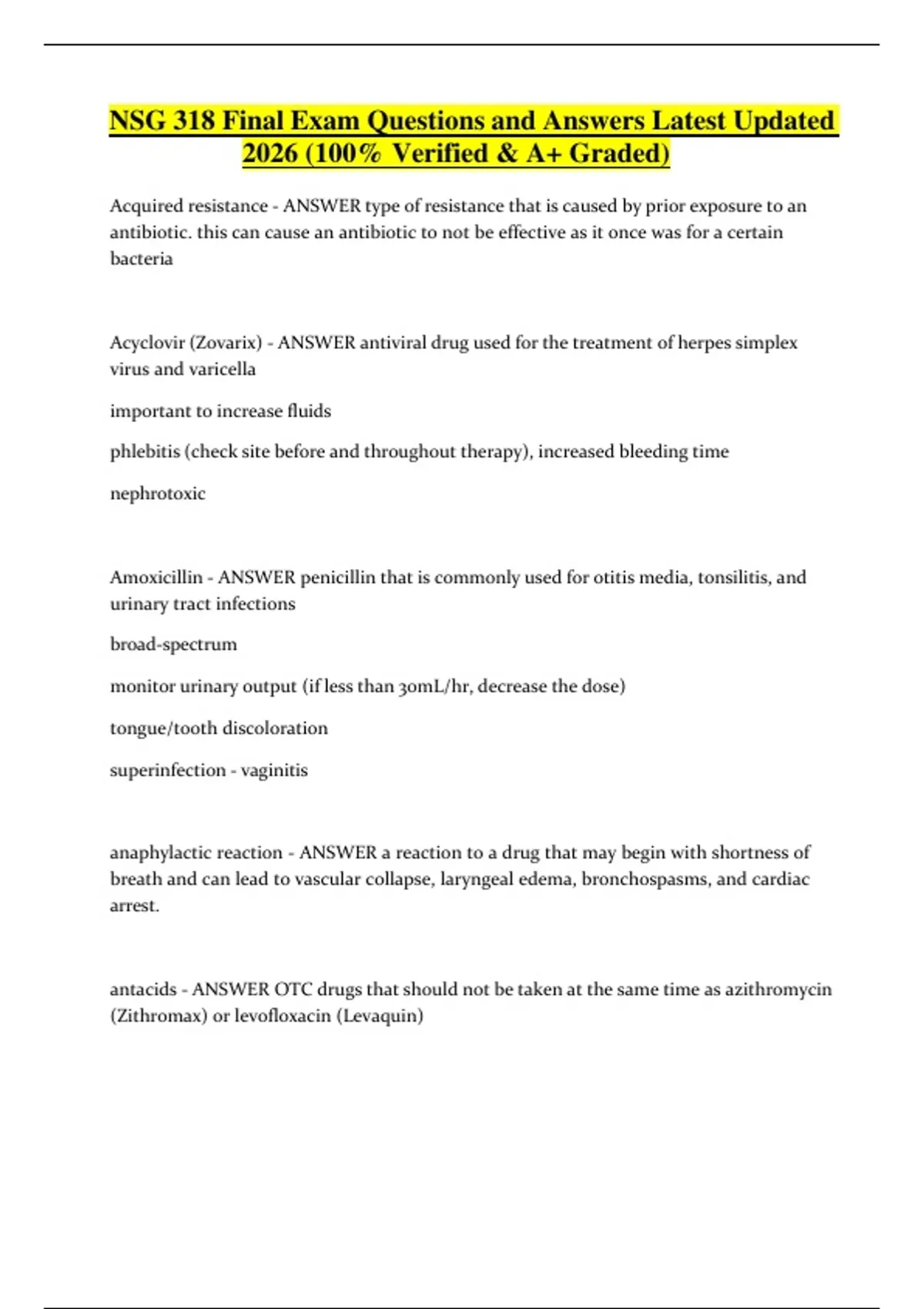 NSG 318 Final Exam Questions and Answers Latest Updated 2026 (100% Verified & A+ Graded)