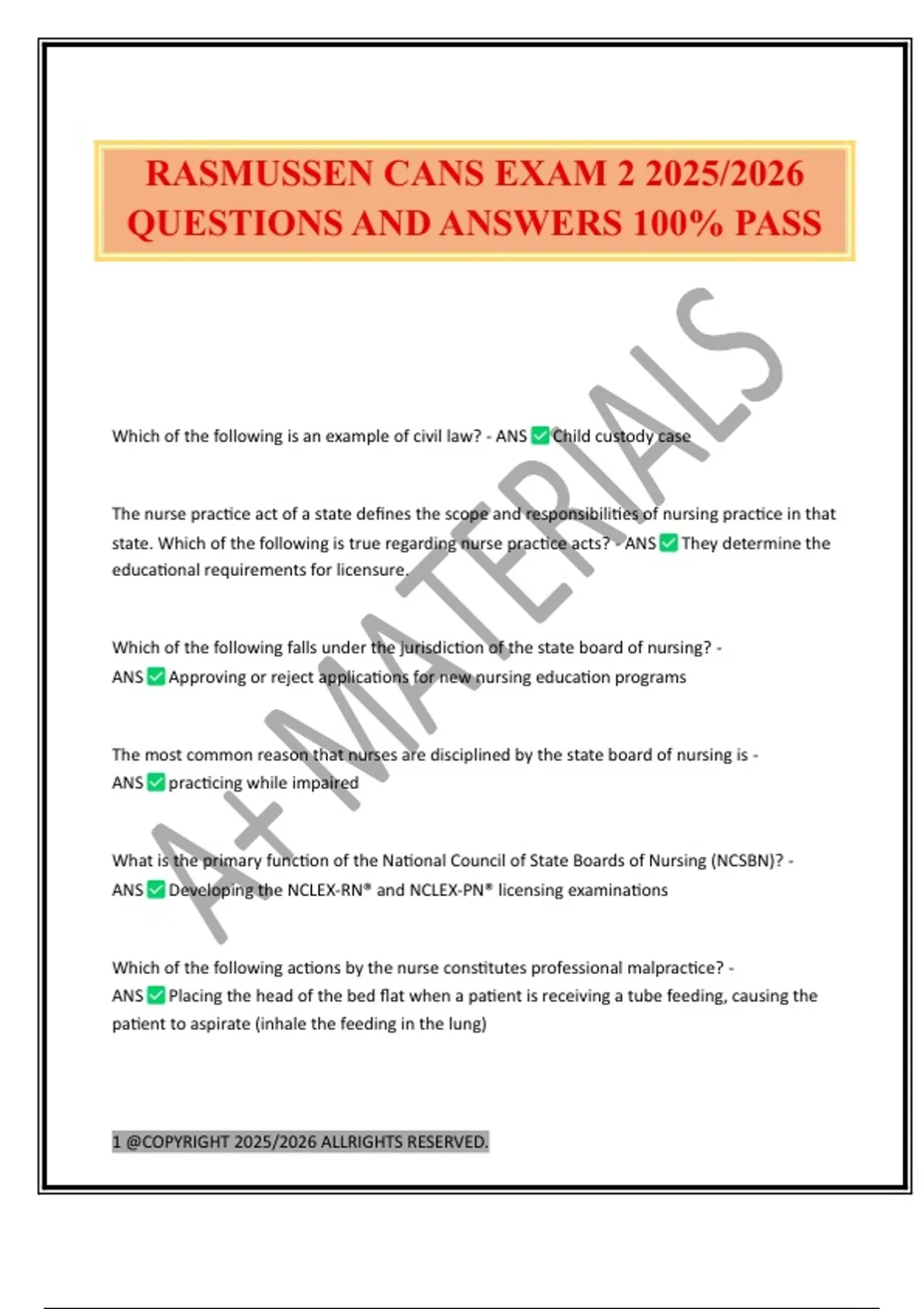 RASMUSSEN CANS EXAM 2 2025/2026 QUESTIONS AND ANSWERS 100% PASS