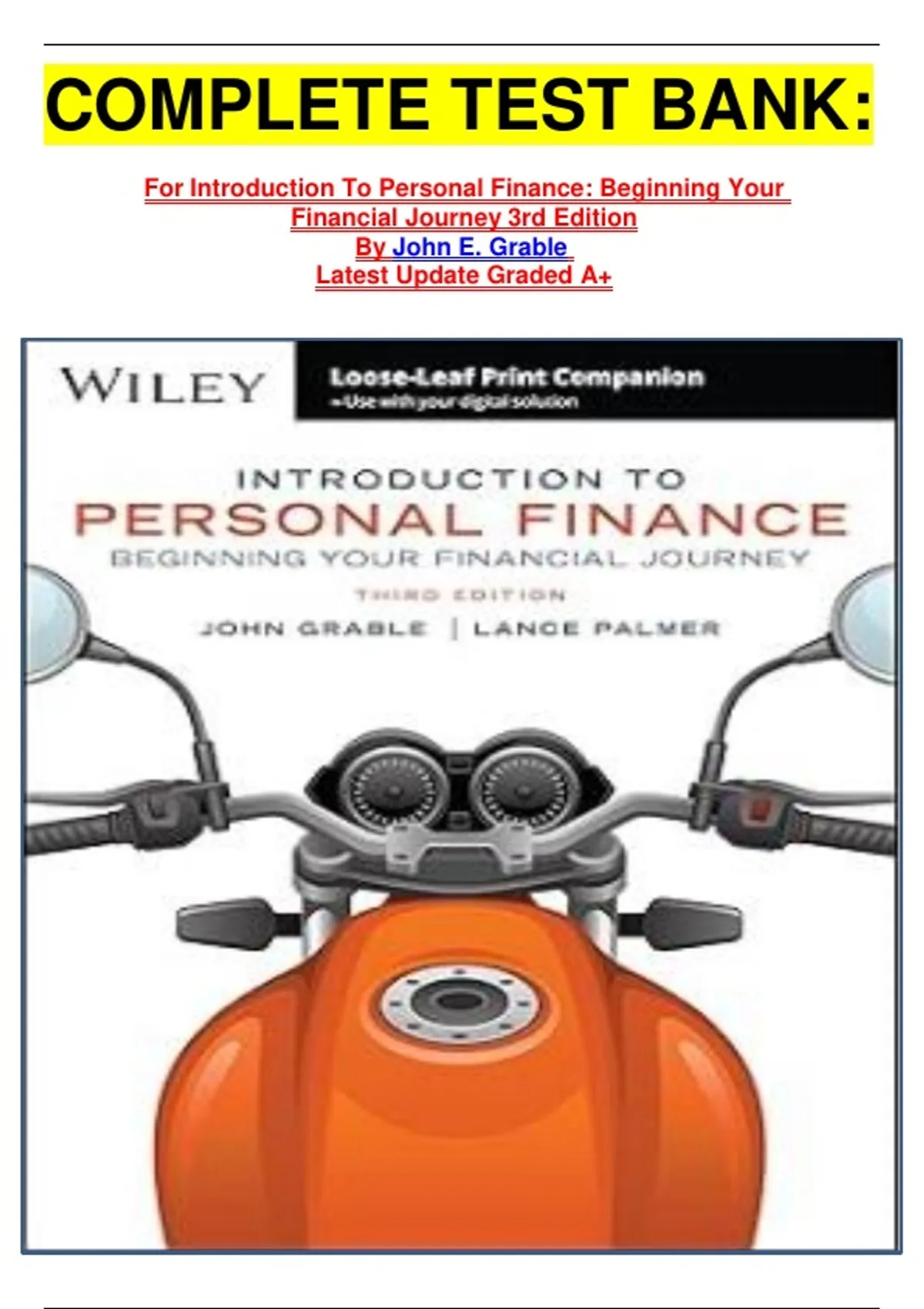 COMPLETE TEST BANK: For Introduction To Personal Finance: Beginning Your Financial Journey 3rd Edition By John E. Grable Latest Update Graded A+
