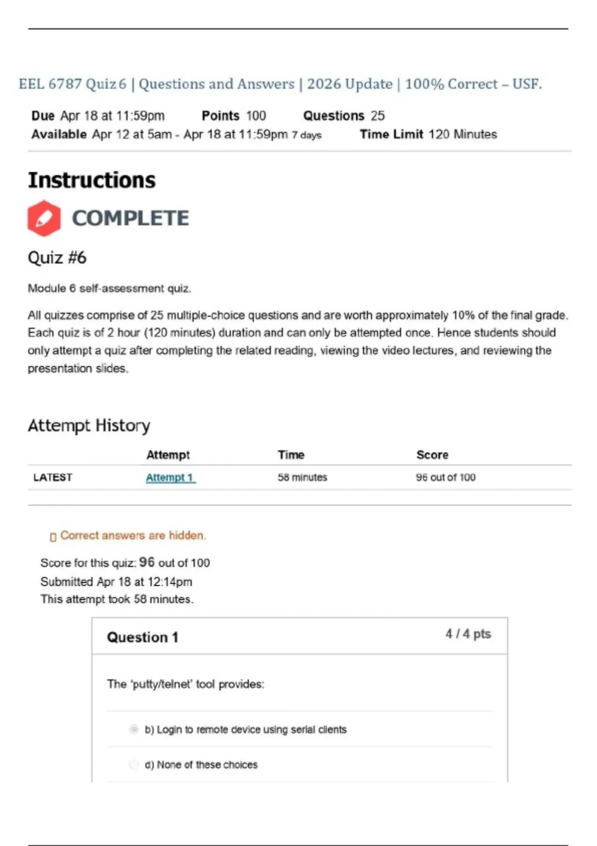 EEL 6787 Quiz 6 | Questions and Answers | 2026 Update | 100% Correct – USF.
