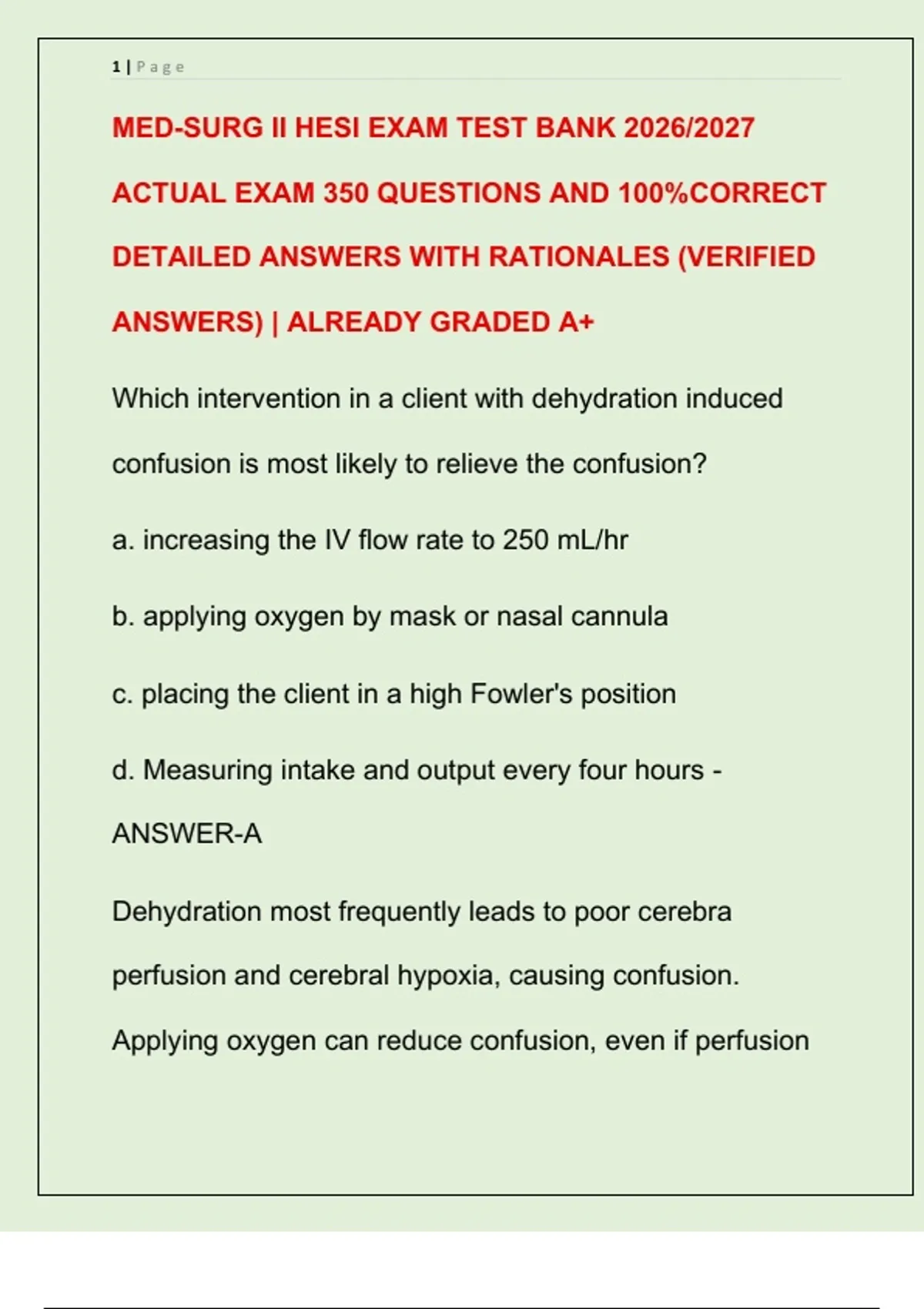MED-SURG II HESI EXAM TEST BANK 2026/2027