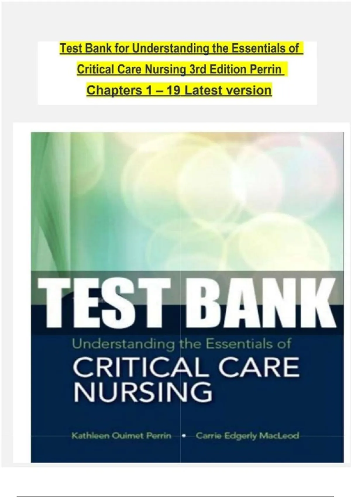 Test Bank for Understanding the Essentials of Critical Care Nursing 3rd Edition Perrin Chapters 1 – 19 Latest version (2)