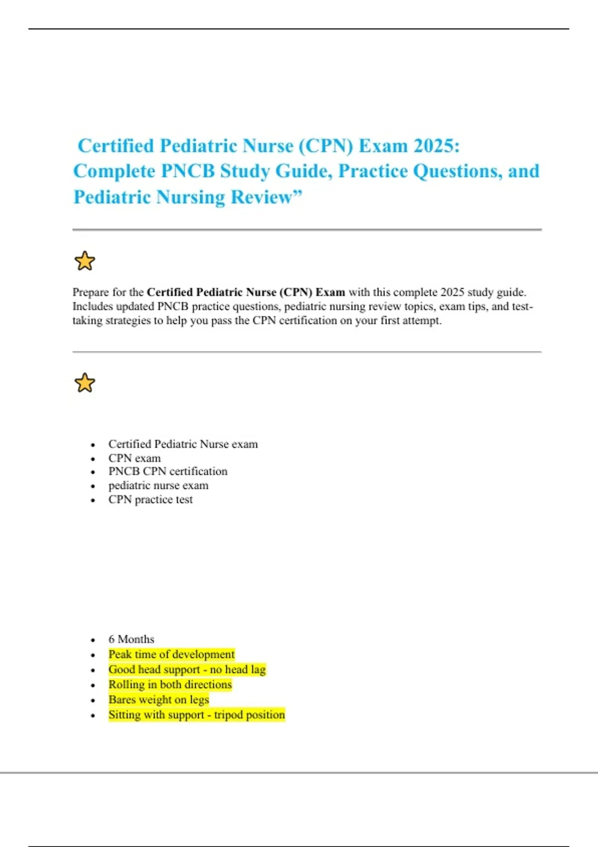 Prepare for the Certified Pediatric Nurse (CPN) Exam with this complete 2025 study guide.