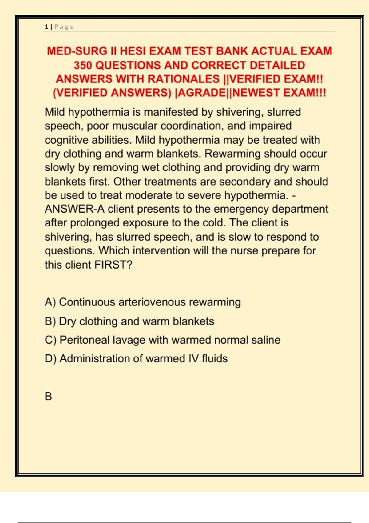 MED-SURG II HESI EXAM TEST BANK ACTUAL EXAM