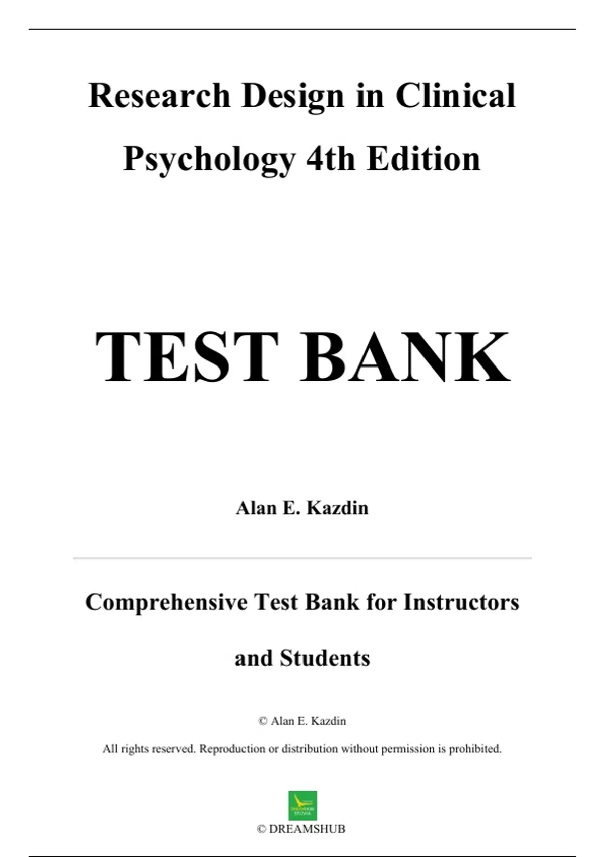 , Test Bank for Research Design in Clinical Psychology (4th Edition)