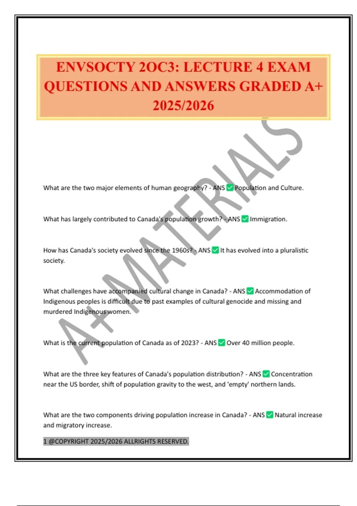ENVSOCTY 2OC3: LECTURE 4 EXAM