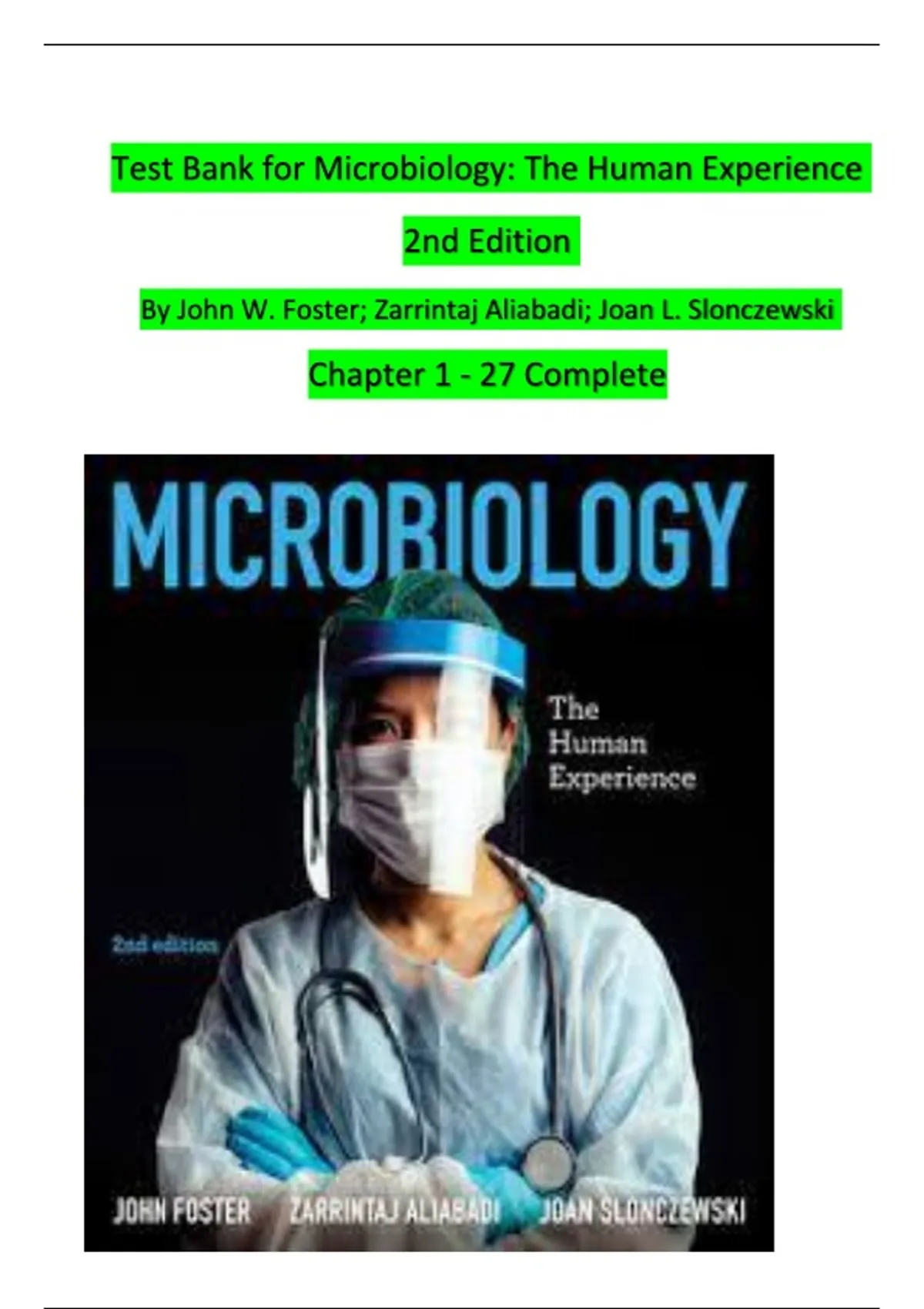 Test Bank for Microbiology: The Human Experience 2nd Edition By John W. Foster; Zarrintaj Aliabadi; Joan L. Slonczewski ISBN:9780393533248 Chapter 1 - 27 Complete