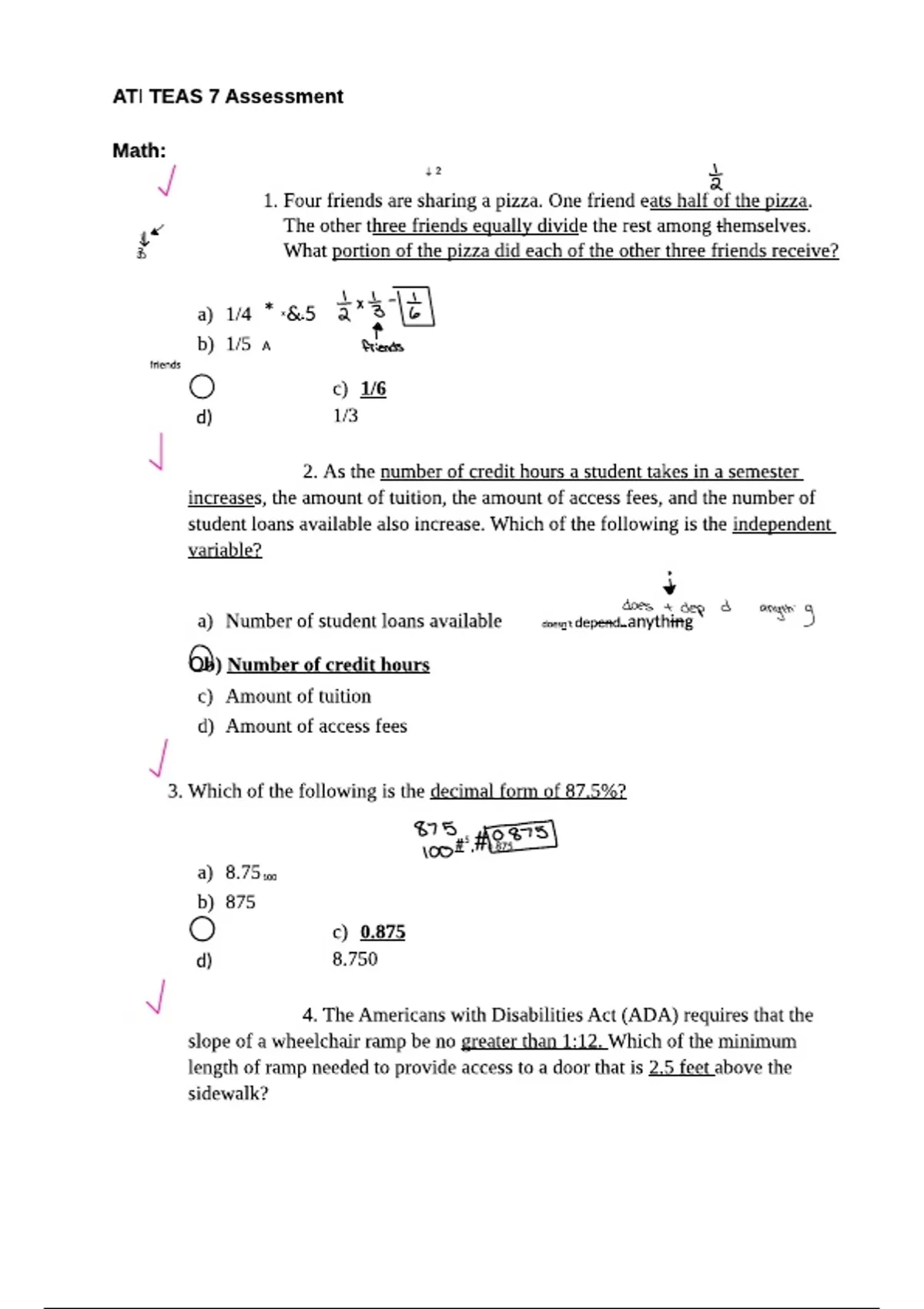 ATI TEAS 7 Assessment Math Practice Questions Study Guide 2025/ 2026