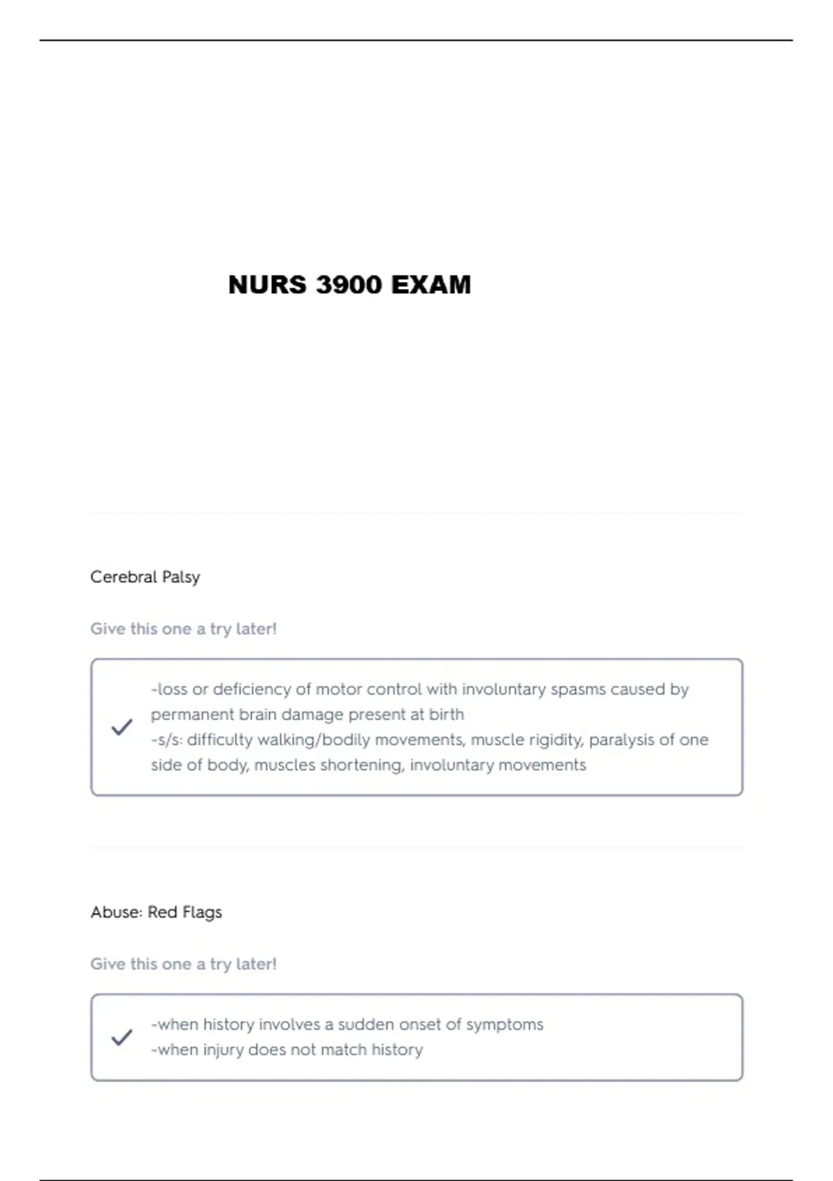 NURS 3900 FINAL QUESTIONS AND VERIFIED ANSWERS
