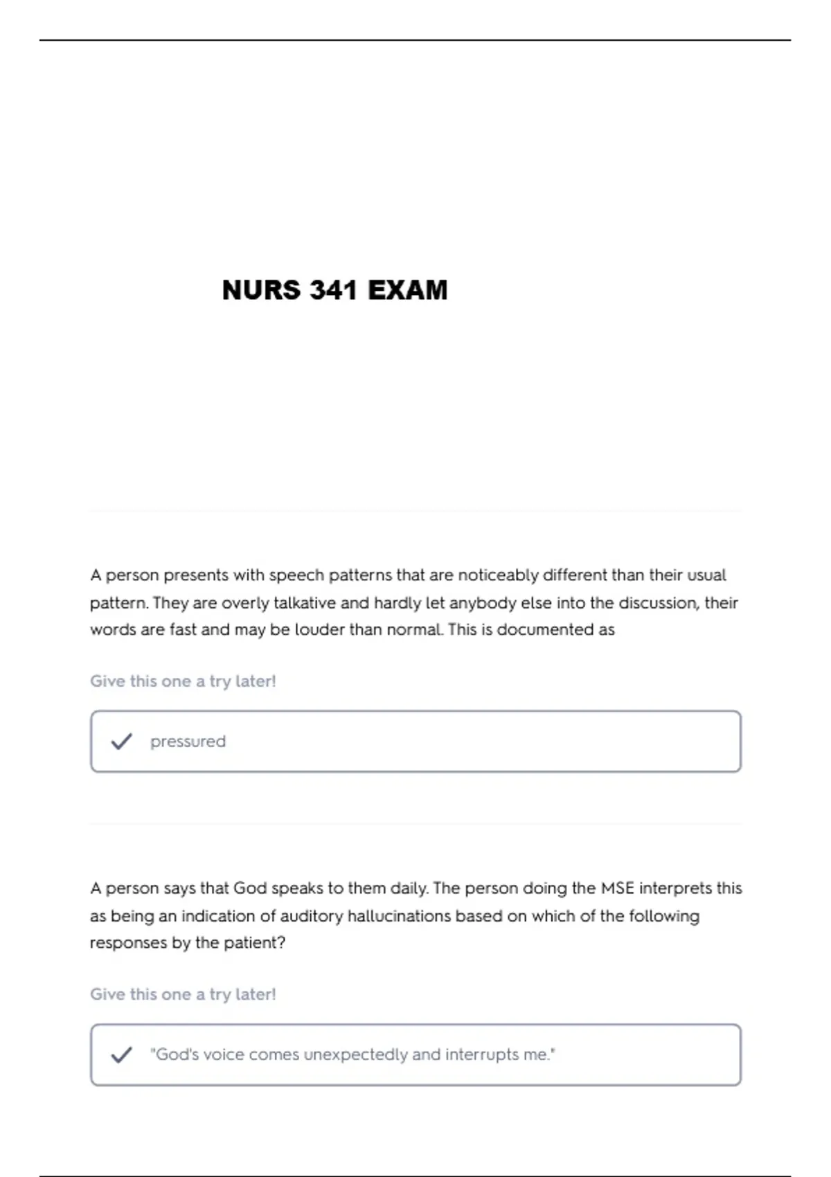 NURS 341 MSE & SI QUESTIONS AND VERIFIED ANSWERS