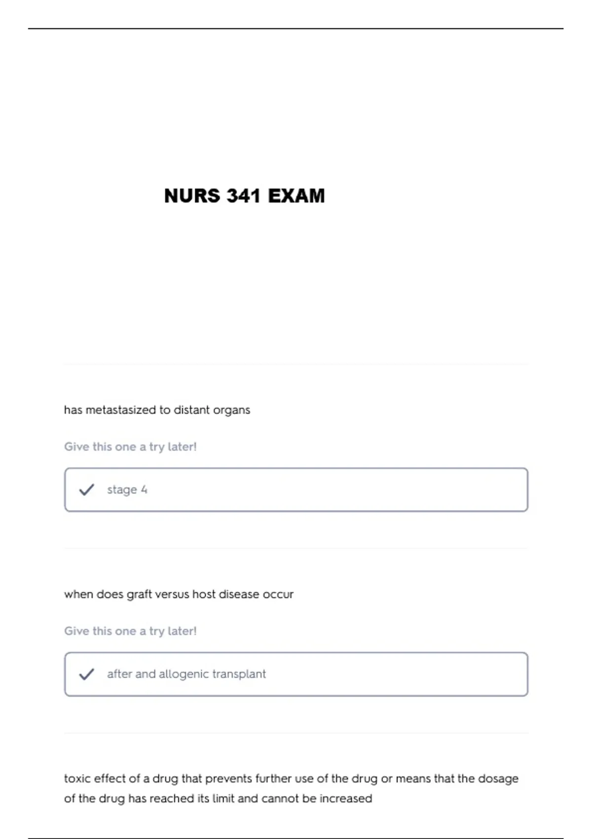 NURS 341 FINAL EXAM ONCOLOGY AND HEMATOLOGY QUESTIONS AND VERIFIED ANSWERS