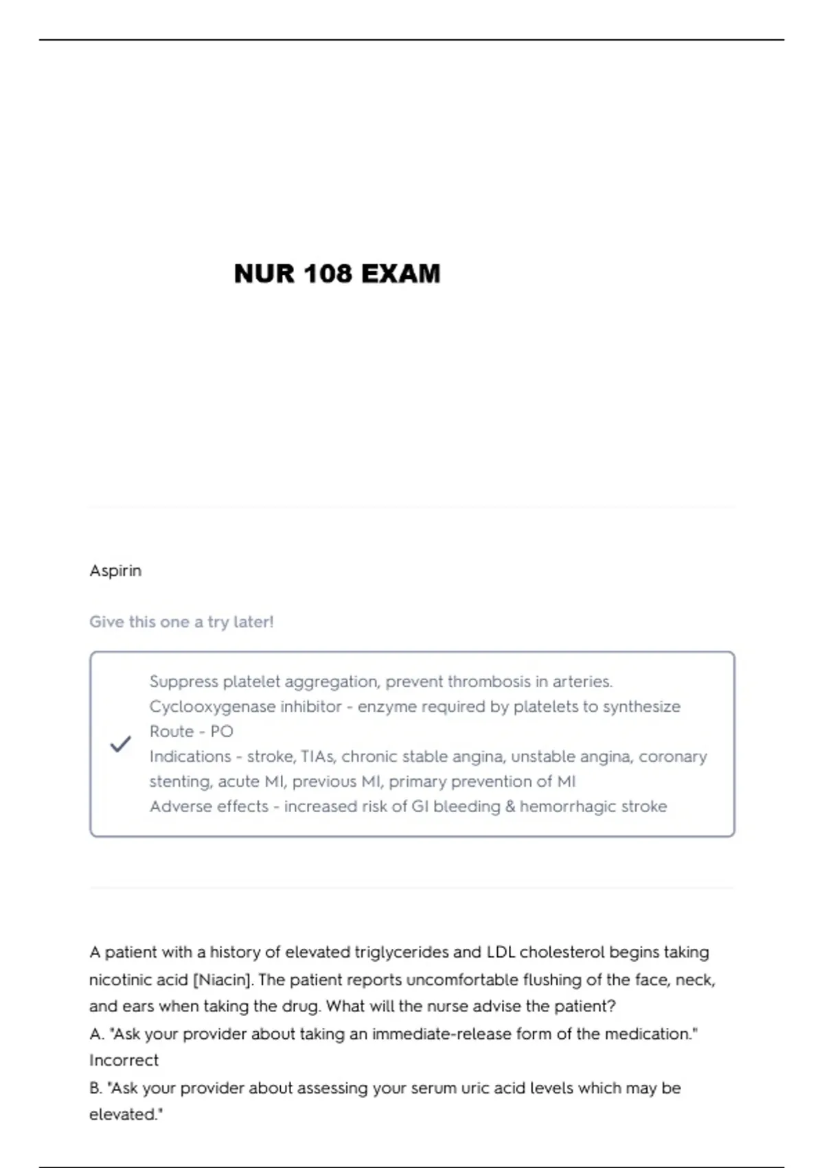 D. "You should take 325 mg of aspirin a half hour before each dose of Niacin to
