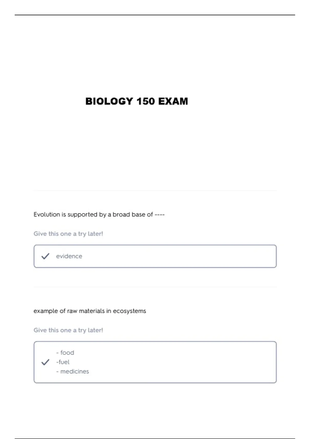 BIO 150 MINI QUIZ QUESTIONS AND VERIFIED ANSWERS