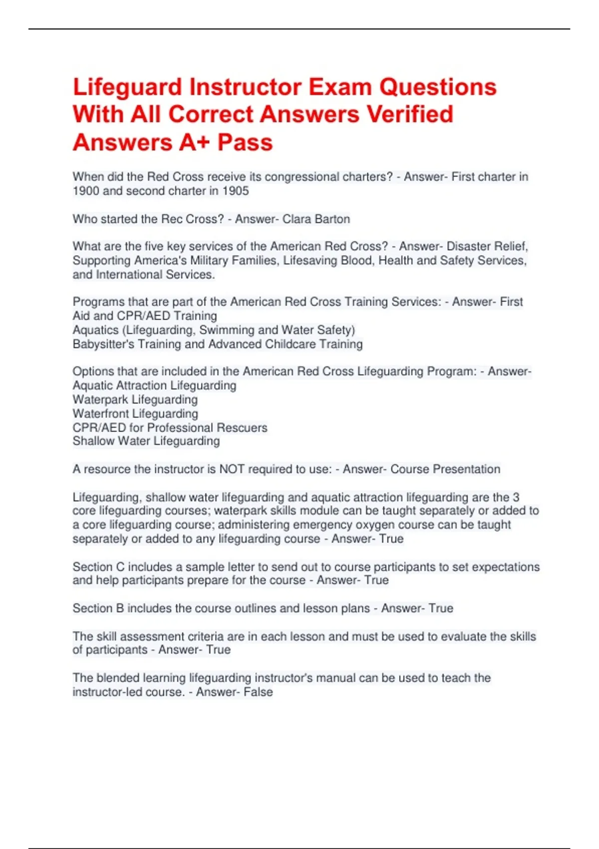 Options that are included in the American Red Cross Lifeguarding Program: - Answer-