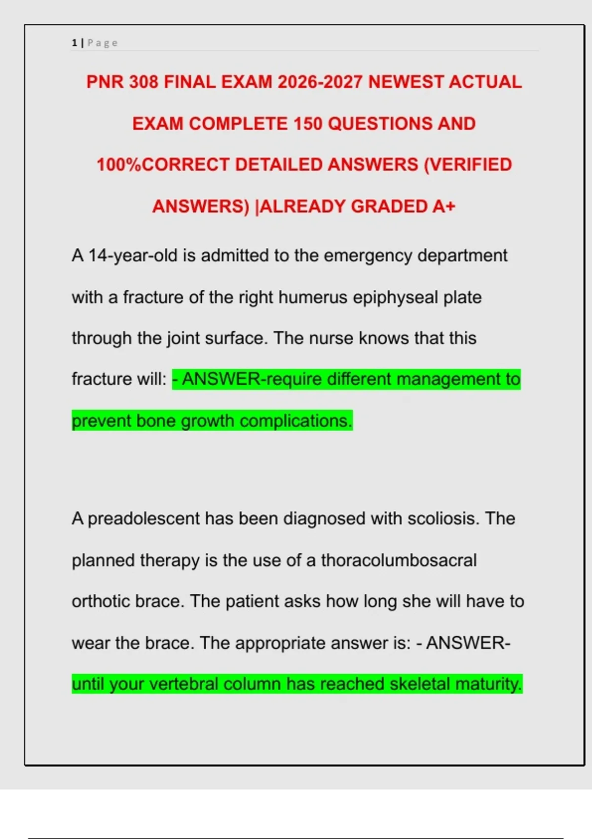 PNR 308 FINAL EXAM NEWEST ACTUAL EXAM COMPLETE 150 QUESTIONS AND 100%CORRECT DETAILED ANSWERS (VERIFIED ANSWERS) |ALREADY GRADED A+