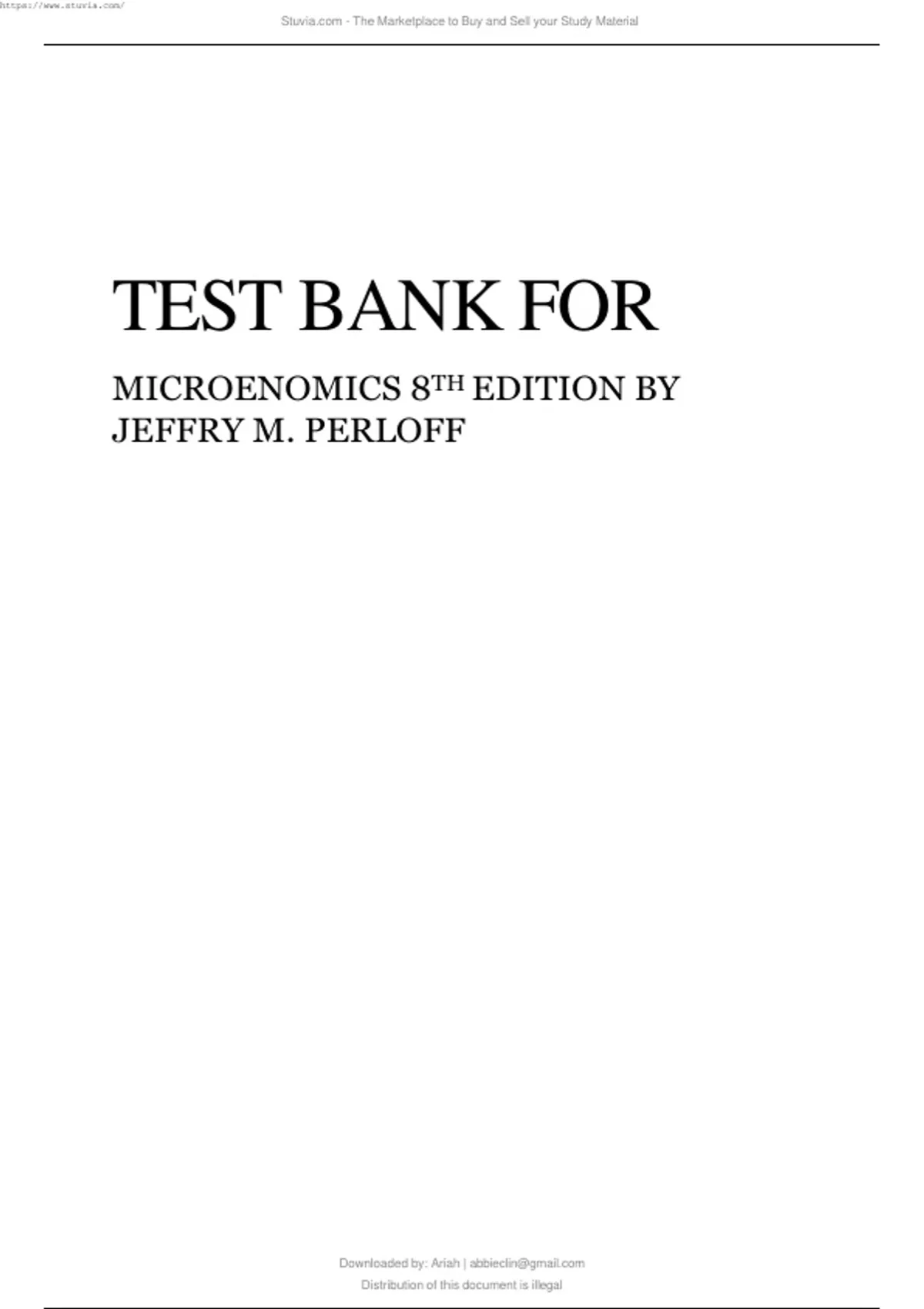 Test Bank for Microeconomics 8th Edition by Jeffrey M. Perloff| 9781292446448| All Chapters| LATEST |2025