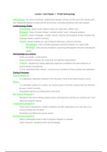 This document contains my notes on chapter 6-10 of Liam Kilmurray’s Anthropology textbook as well as his lectures 5-9. The topics include: expressive culture, ethnographic studies, material culture, religion and culture and archaeology. My notes are very detailed and neat so information is easy to
