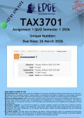Both the Constitution of the republic of South Africa and the Labour Relations Act provide and promotes without distinction the right to freedom of association and employees’ engagement with collective bargaining. However, operationalising this rig... i x Book Exam (elaborations) • 21 pages • by Edge • uploaded 2026 Quick View i x University of South Africa (Unisa) • LLB Research Report Collective Bargaining and Collective Action • Julia López López• ISBN 9781509923175 TAX3701 Assignment 1 (ANSWERS) Semester 1 2026 - DISTINCTION GUARANTEED (0) CA$6.34 3x sold Comprehensively structured TAX3701 Assignment 1 (ANSWERS) Semester 1 2026 - DISTINCTION GUARANTEED. Prepared to a distinction standard with detailed and well-developed responses. A vendor purchases goods for R11,500 (incl. VAT). What is the input tax?