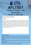 Edge On this page, you find all documents, package deals, and flashcards offered by seller Edge. 3049 Documents 0 Flashcards 0 Package deal Community 4248 Followers 5 Following 1273 Reviews received 716 258 190 31 78 1 day ago • VDitlhal CIV3701 Assignment 2 (ANSWERS) Semester 1 2026 - DISTINCTION GUARANTEED 1 day ago • Bukanana MAC3702 Assignment 1 (ANSWERS) Semester 1 2026 - DISTINCTION GUARANTEED 1 day ago • pmashao70 LME3701 Assignment 2 Research Proposal (HISTORICAL & COMPARATIVE ANSWERS) Semester 1 2026 - DISTINCTION GUARANTEED 1 day ago • lusandamabizela RRLLB81 Assignment 2 (RESEARCH REPORT ANSWERS) Semester 1 2026 - DISTINCTION GUARANTEED - The philosophy of feminism in law 2 days ago • jnmanitshana5 PVL3702 Assignment 1 (ANSWERS) Semester 1 2026 - DISTINCTION GUARANTEED + Show more reviews 3055 items Everything Documents Flashcards Package deal Best sold Newest Rating CMY2604 Assignment 1 (ANSWERS) Semester 1 2026 - DISTINCTION GUARANTEED (0) CA$6.33 0x sold Comprehensively structured CMY2604 Assignment 1 (ANSWERS) Semester 1 2026 - DISTINCTION GUARANTEED. Prepared to a distinction standard with detailed and well-developed responses... Diversion 1. Based on the scenario above, critically discuss the applicability of diversion for Henry with reference to the Child Justice Act 75 of 2008 (as amended in the Child Justice Amendment Act 9 of 2019). In your discussion, you must address the objectives of diversion, the criteria required for Henry to be d... i x Book Exam (elaborations) • 8 pages • by Edge • uploaded 2026 Quick View i x University of South Africa (Unisa) • Dealing with Young Offenders Dealing with Young Offenders • John A. Seymour• ISBN 9780455207933 PVL2601 Assignment 2 (ANSWERS) Semester 1 2026 - DISTINCTION GUARANTEED (0) CA$6.33 0x sold Comprehensively structured PVL2601 Assignment 2 (ANSWERS) Semester 1 2026 - DISTINCTION GUARANTEED. Prepared to a distinction standard with detailed and well-developed responses... Question 1 X and Z, engaged lovers, have come to you seeking legal advice. They want to sign an antenuptial contract. Mr Z informs you that Ms X is not employed and that he is taking care of her financially. However, should their marriage not succeed, he does not want to be responsible for her maintenance after divor... i x Book Exam (elaborations) • 5 pages • by Edge • uploaded 2026 Quick View i x University of South Africa (Unisa) • Family Law Family and Succession Law in South Africa • Jacqueline Heaton, Anneliese Roos• ISBN 9789403513188 AFL1501 Assignment 1 (ANSWERS) Semester 1 2026 - DISTINCTION GUARANTEED (0) CA$6.33 2x sold Comprehensively structured AFL1501 Assignment 1 (ANSWERS) Semester 1 2026 - DISTINCTION GUARANTEED. Prepared to a distinction standard with detailed and well-developed responses... Section C: Peer Engagement (40 Marks) Respond to the above classmates’ posts. Each response must be at 200 words in length and demonstrate meaningful engagement. Your response should: Add a perspective, question, example, or challenge (respectfully) Avoid short or generic replies (e.g., “I agree” or “Well sai... i x Book Exam (elaborations) • 10 pages • by Edge • uploaded 2026 Quick View i x University of South Africa (Unisa) • Language Through an African Lens An African Language Experience • Dahiru Muhammad Argungu• ISBN 9781482876055 LCP4805 Assignment 1 (ANSWERS) Semester 1 2026 - DISTINCTION GUARANTEED (0) CA$6.33 0x sold Comprehensively structured LCP4805 Assignment 1 (ANSWERS) Semester 1 2026 - DISTINCTION GUARANTEED. Prepared to a distinction standard with detailed and well-developed responses... QUESTION 1 Section 2(1) of the National Environmental Management Act 107 of 1998 (NEMA) states that the principles set out in the particular section apply to the actions of all organs of state that may significantly affect the environment Section 24o of the National Environmental Management Act, 107 of 1998 (NEMA) li... i x Book Exam (elaborations) • 9 pages • by Edge • uploaded 2026 Quick View i x University of South Africa (Unisa) • Environmental Law Environmental Law and Local Government in South Africa • Anel du Plessis• ISBN 9781485100508 RRLLB81 Assignment 2 (RESEARCH REPORT ANSWERS) Semester 1 2026 - DISTINCTION GUARANTEED - Tax planning and impermissible tax avoidance (0) CA$6.33 2x sold Comprehensively structured RRLLB81 Assignment 2 (RESEARCH REPORT ANSWERS) Semester 1 2026 - DISTINCTION GUARANTEED. Prepared to a distinction standard with detailed and well-developed responses. Tax planning and impermissible tax avoidance