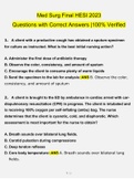 Questions with Correct Answers |100% Verified i x Exam (elaborations) • 57 pages • by LectBryan • uploaded 2023 Quick View i x HESI - Medical Surgical Nursing • HESI - Medical Surgical Nursing Med Surg 2023 Hesi Practice Questions with Correct Answers |100% Verified (0) CA$18.33 0x sold Med Surg 2023 Hesi Practice