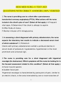 Lectbryan On this page, you find all documents, package deals, and flashcards offered by seller LectBryan. 680 Documents 0 Flashcards 38 Package deal Community 7 Followers 0 Following 5 Reviews received 2 0 0 2 1 11 months ago • njoselyne94 RN Targeted Medical Surgical Immune Online Practice Questions With Correct Answers 100% Verified(2023/2024) 11 months ago • njoselyne94 RN Targeted Medical Surgical Neuro & Musculoskeletal Online Practice Questions With Correct Answers 100% Verified(2023/2024) 1 year ago • mmesomachiwetalu9 RN Targeted Medical Surgical Neurosensory and Musculoskeletal Online Practice Questions With Correct Answers 100% Verified(2023/2024) 1 year ago • Helenjoseph RN Targeted Medical Surgical Respiratory Online Practice Questions With Correct Answers 100% Verified (2023/2024) 2 year ago • geraordaz61 Leadership Tools leading marines 2023 Questions with 100% Correct Answe 722 items Everything Documents Flashcards Package deal Best sold Newest Rating HESI MED SURG #1 TEST 2023 QUESTIONS WITH CRRECT ANSWERS |100% VERIFIED (0) CA$17.49 0x sold HESI MED SURG #1 TEST 2023