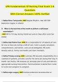 WITH CORRECT ANSWERS 100% VERIFIED,LPN Fundamentals Study Guide 1,