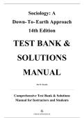 Test Bank & Solution Manual — Sociology: A Down-To-Earth Approach, 14th Edition — James M. Henslin — Latest Update 2025/2026 — (All Chapters Covered 1–22). Chapters included: Chapter 1: The Sociological Perspective, Chapter 2: Culture, Chapter 3: Socialization, Chapter 4: Social Structure and Social Interaction, Chapter 5: How Sociologists Do Research, Chapter 6: Societies to Social Networks, Chapter 7: Bureaucracy and Formal Organizations, Chapter 8: Deviance and S...