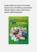This document contains detailed solutions for Century 21 Accounting: General Journal, 11th Edition by Claudia Bienias Gilbertson, Mark W. Lehman, and Debra Harmon-Gentene. It provides step-by-step answers and explanations for accounting exercises, journal entries, and problem sets from the textbook.