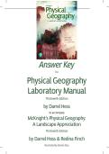 This document contains the Answer Key for the Physical Geography Laboratory Manual, Thirteenth Edition by Darrel Hess, designed to accompany McKnight’s Physical Geography: A Landscape Appreciation (13th Edition) by Darrel Hess and Redina Finch. It provides complete solutions and correct answers for the laboratory exercises included in the manual.