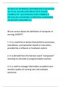 A+ i x Exam (elaborations) • 65 pages • by hesisolver • uploaded 2024 Quick View i x Nursing Process (R • Nursing Process (R NCMA210: NURSING INFORMATICS QUIZZES ACTUAL EXAM AND PRACTICE EXAM COMPLETE QUESTIONS AND CORRECT DETAILED ANSWERS (VERIFIED ANSWERS) |ALREADY GRADED A+ (0) CA$30.65 0x sold NCMA210: NURSING INFORMATICS QUIZZES