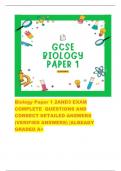 perfect exam room For all nursing exams with correct answers, all verified and graded A+ . 249 Documents 1 Flashcards 9 Package deal Community 0 Followers 2 Following 272 items Everything Documents Flashcards Package deal Best sold Newest Rating Biology Paper 1 2AND3 EXAM COMPLETE QUESTIONS AND CORRECT DETAILED ANSWERS (VERIFIED ANSWERS) |ALREADY GRADED A+ (0) CA$32.52 0x sold Biology Paper 1 2AND3 EXAM