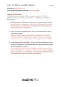 Comprehensive BIO202 Lab 10 test bank covering Blood and the Heart. Includes lab-based questions with accurate, verified answers to support Anatomy & Physiology II coursework, practical lab exercises, and exam preparation. Topics include blood composition, hematology, heart anatomy, cardiac cycle, and cardiovascular physiology. Fully searchable PDF, updated for 2026, ideal for students and instructors completing BIO202 cardiovascular system labs.