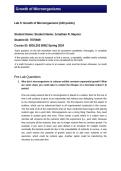 Comprehensive BIO202 Lab 5 test bank covering Growth of Microorganisms. Includes lab-based questions with accurate, verified answers to support microbiology coursework, practical lab exercises, and exam preparation. Topics include microbial growth phases, culture techniques, environmental influences on growth, and colony counting. Fully searchable PDF, updated for 2026, ideal for students and instructors completing BIO202 microbiology labs.