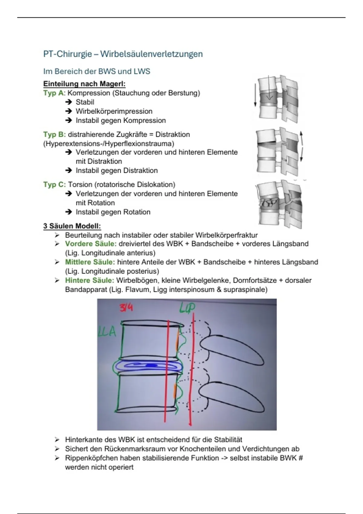 ➢ Mittlere Säule: hintere Anteile der WBK + Bandscheibe + hinteres Längsband
