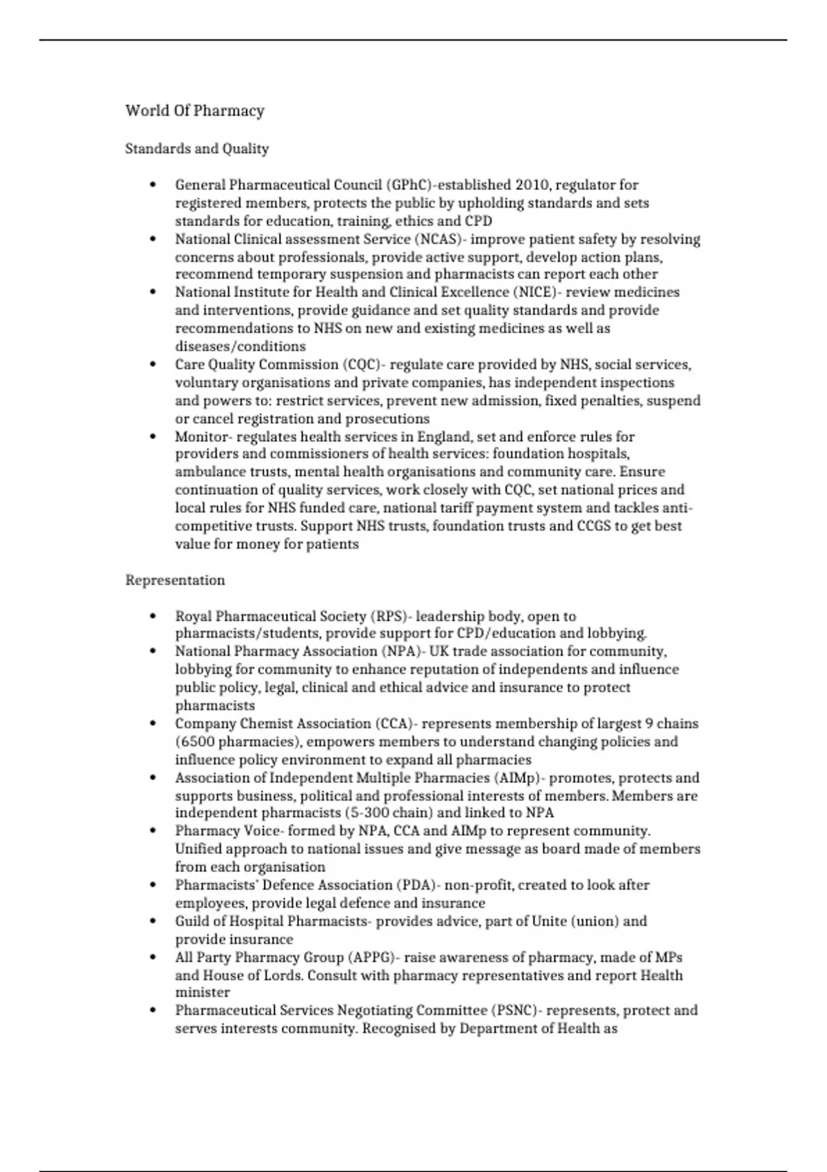 Pharmacy - foundation in pharmacy practice 1st year summary Summary notes including bullet points, key diagrams/images