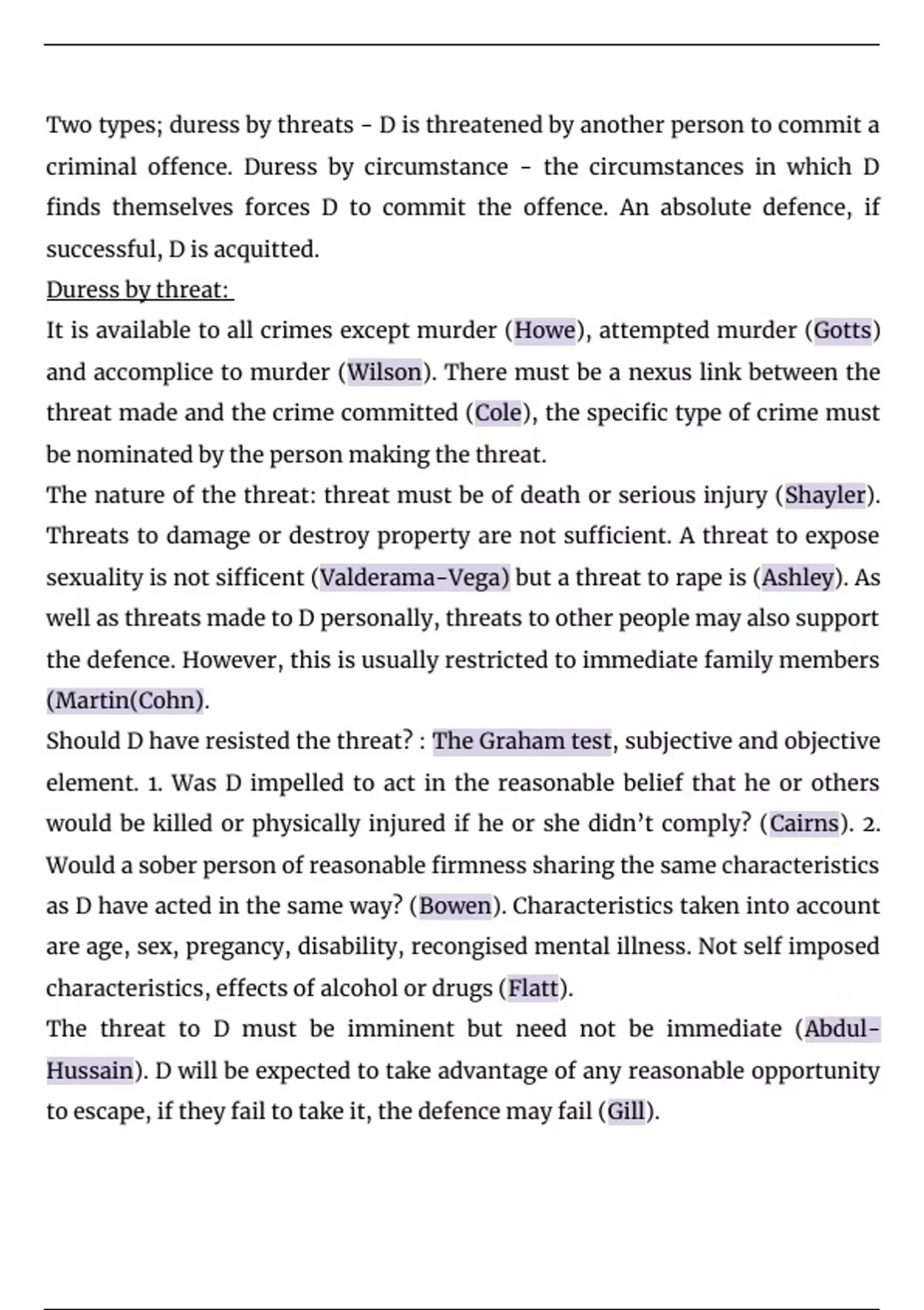 Summary of duress - Criminal law