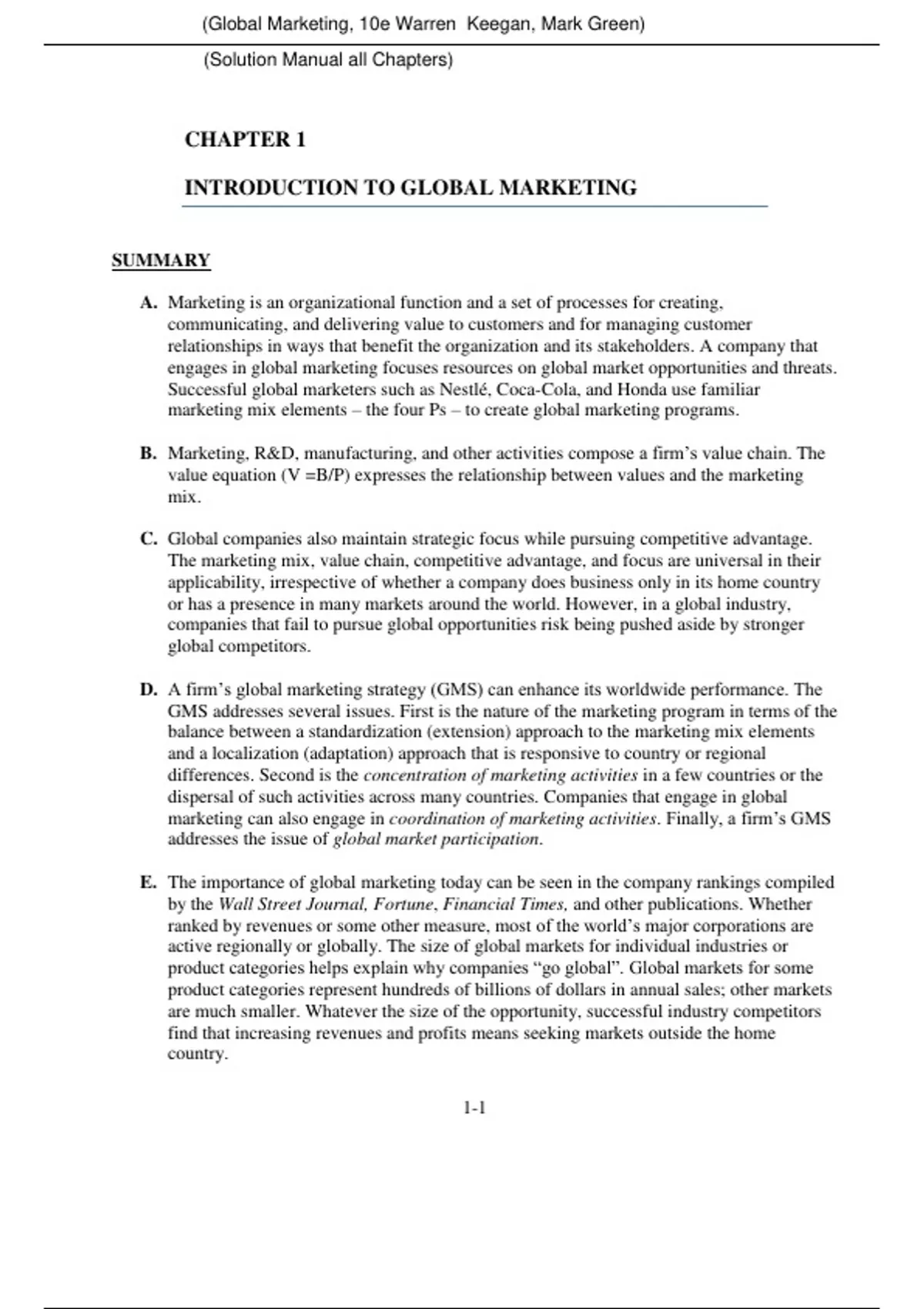 Global Marketing, 10e Warren Keegan, Mark Green (Solution Manual with Test Bank) Discount Price Bundle Download