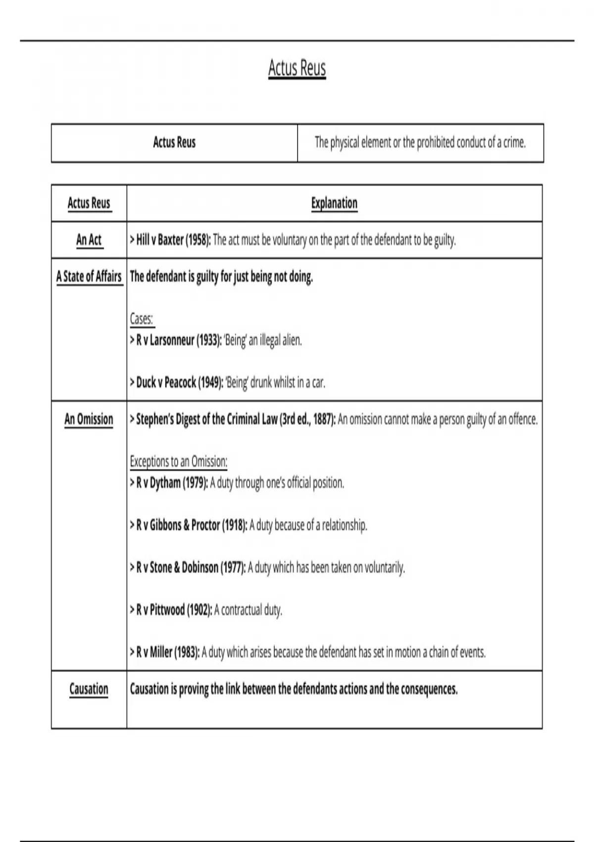 Criminal Law: Actus Reus Mind Map