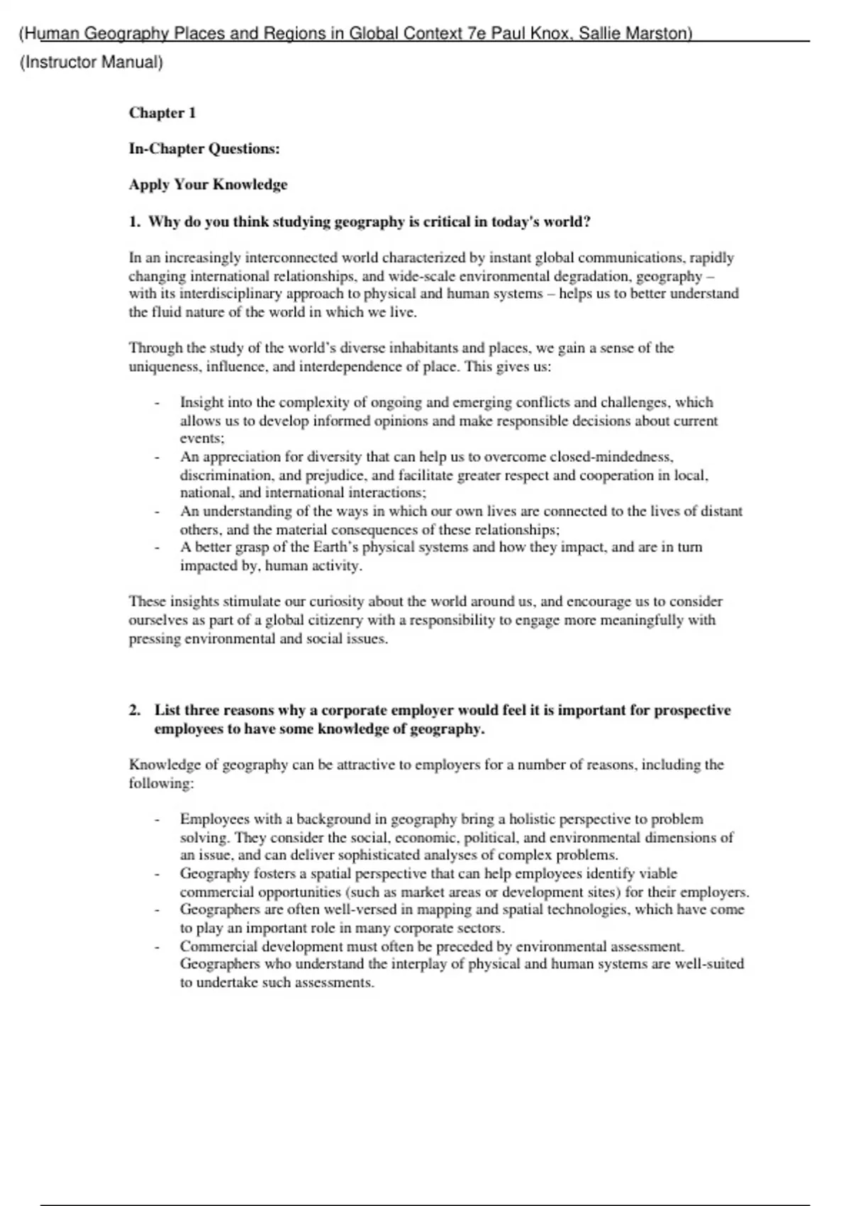 Human Geography Places and Regions in Global Context 7e Paul Knox, Sallie Marston (Instructor Manual with Test Bank) Discount Price Bundle Download