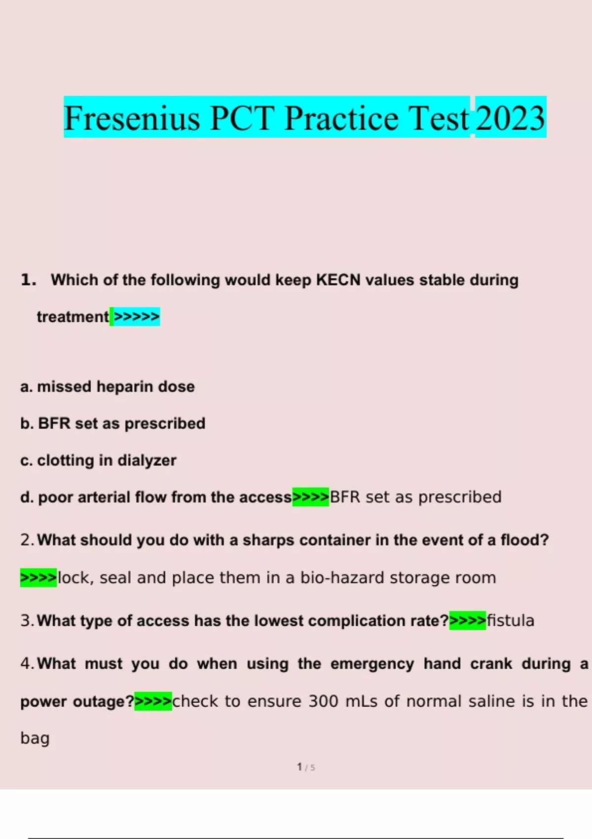 Fresenius Exam With Complete Solutions 2023 FRESENIUS EXAM Questions And Answers 2023 Fresenius Final Exam With Complete Solutions 2023 Fresenius Final Exam With Complete Solutions 2023 Fresenius Nurse Final Exam Part 2 With 100% Correct Answers 2023 Fresenius Nurse Final Exam Part 1 Questions And Answers 2023